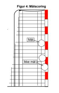 9:1 Der er opnået en målscoring, når bolden i sit fulde omfang har passeret den fulde bredde af mållinjen (fig. 4), såfremt der ikke er sket nogen regelovertrædelse fra kasterens, en medspillers eller en af hans egne holdofficials side - før eller under kastet.