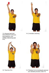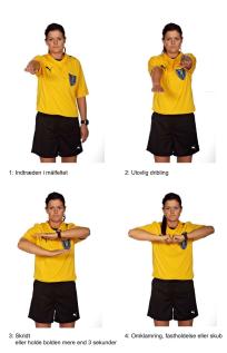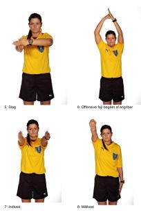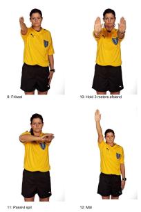 Hvis dommerne vurderer, at det vil være nyttigt at forklare årsagen til et frikast eller et straffekast. så kan de benytte markeringerne 1 til 6 og 11.
