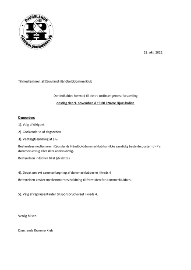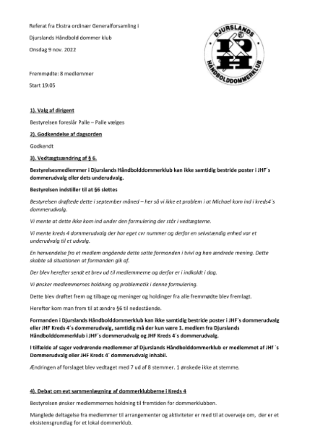 - Dommerklubben har ikke modtaget nogle forslag, men har selv stille forslag op omkring ændring af vedtægterne.