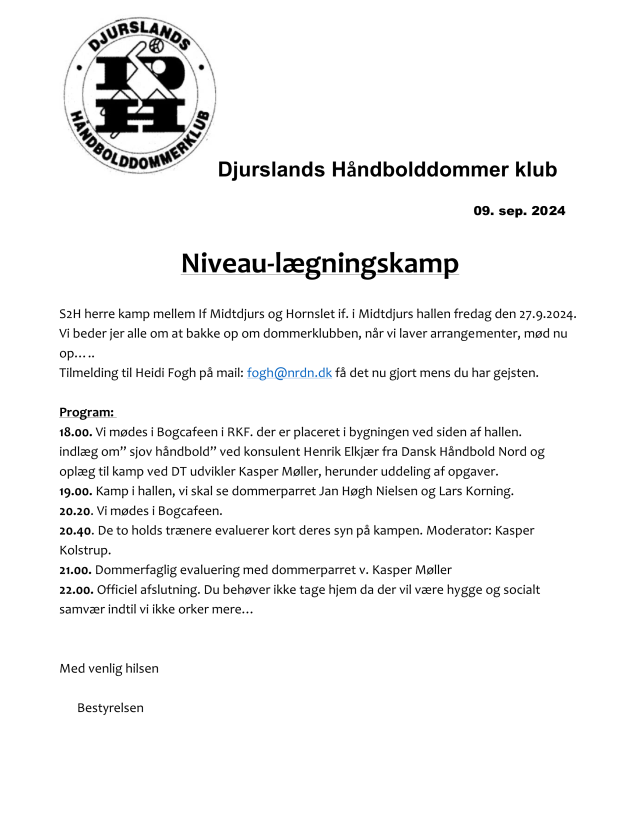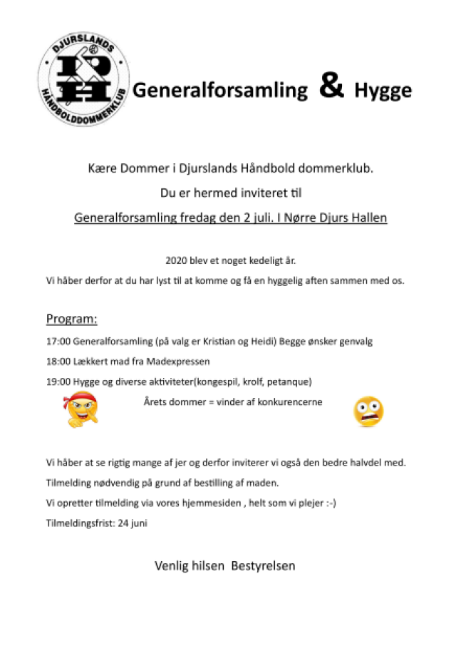 Djurslands håndbolddommer klub byder medlemmerne til damehåndbold i toppen af den danske liga. Kom og nyd håndbolden og det sociale på en tirsdag aften inden sæsonen for alvor går i gang. klubben er vært med en øl eller vand.